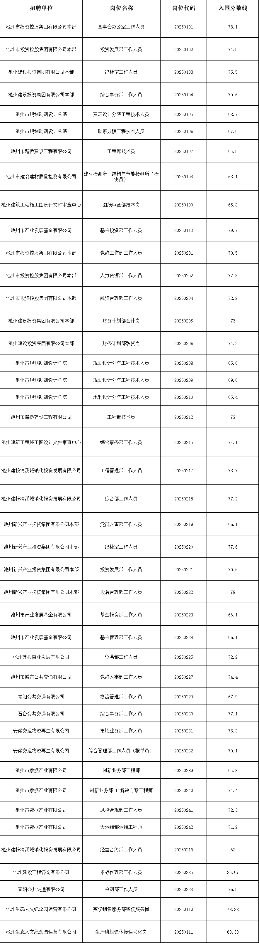 根據(jù)《池州市投資控股集團2025年公開招聘工作人員公告》要求,公開招聘筆試工作已結(jié)束,現(xiàn)將資格復(fù)審及面試相關(guān)事宜公告如下。