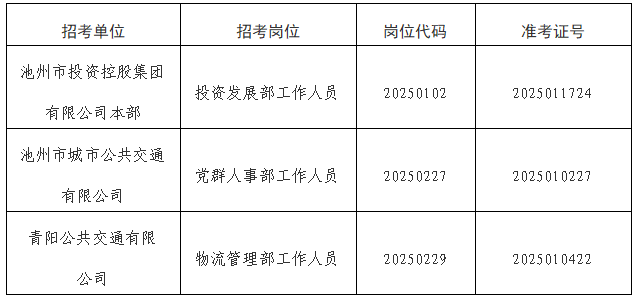根據(jù)《池州市投資控股集團(tuán)2025年公開(kāi)招聘工作人員公告》要求,由于入圍體檢的考生中有部分人員自動(dòng)放棄或不合格產(chǎn)生了人員空缺?,F(xiàn)按《公告》要求,視崗位情況進(jìn)行遞補(bǔ)。現(xiàn)將入圍遞補(bǔ)體檢情況公告如下: