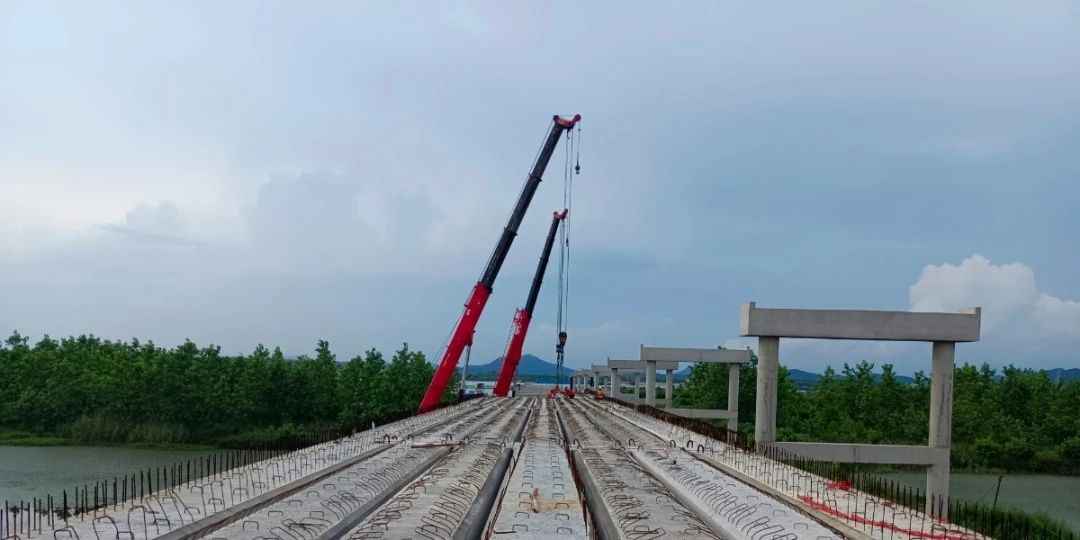 預(yù)制空心板首件的成功安裝打響了碼頭引橋部分上部結(jié)構(gòu)施工的第一槍?zhuān)瑸楹罄m(xù)安裝架設(shè)提供了寶貴經(jīng)驗(yàn)。目前,正是烏沙港各個(gè)施工節(jié)點(diǎn)突破的關(guān)鍵期,各參建管理人員在烏沙港現(xiàn)場(chǎng)艱苦鏖戰(zhàn),掛圖作戰(zhàn),倒排工期,加壓奮進(jìn),在確保安全和質(zhì)量的前提下,全力推進(jìn)項(xiàng)目建設(shè)進(jìn)度,全力沖刺項(xiàng)目年度建設(shè)的節(jié)點(diǎn)目標(biāo)。