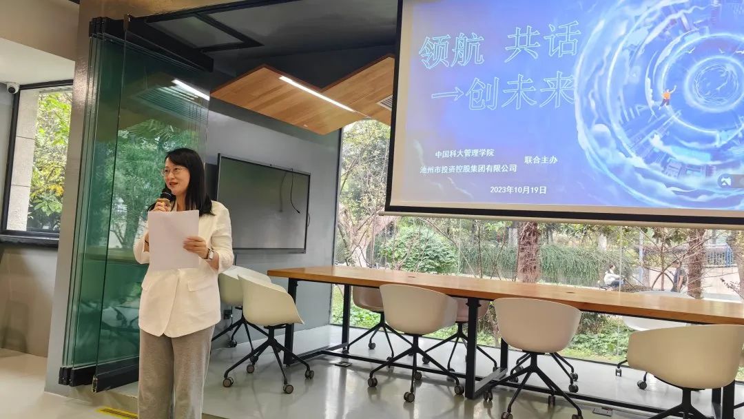 中國科大管理學(xué)院黨委副書記曾皓,池州市投資控股集團黨委副書記、董事、工會主席嚴艷,中國科大博士學(xué)長、池州新興產(chǎn)投集團黨委書記、董事長、總經(jīng)理周嶠,中國科大管理學(xué)院50多名學(xué)生參加了會議。