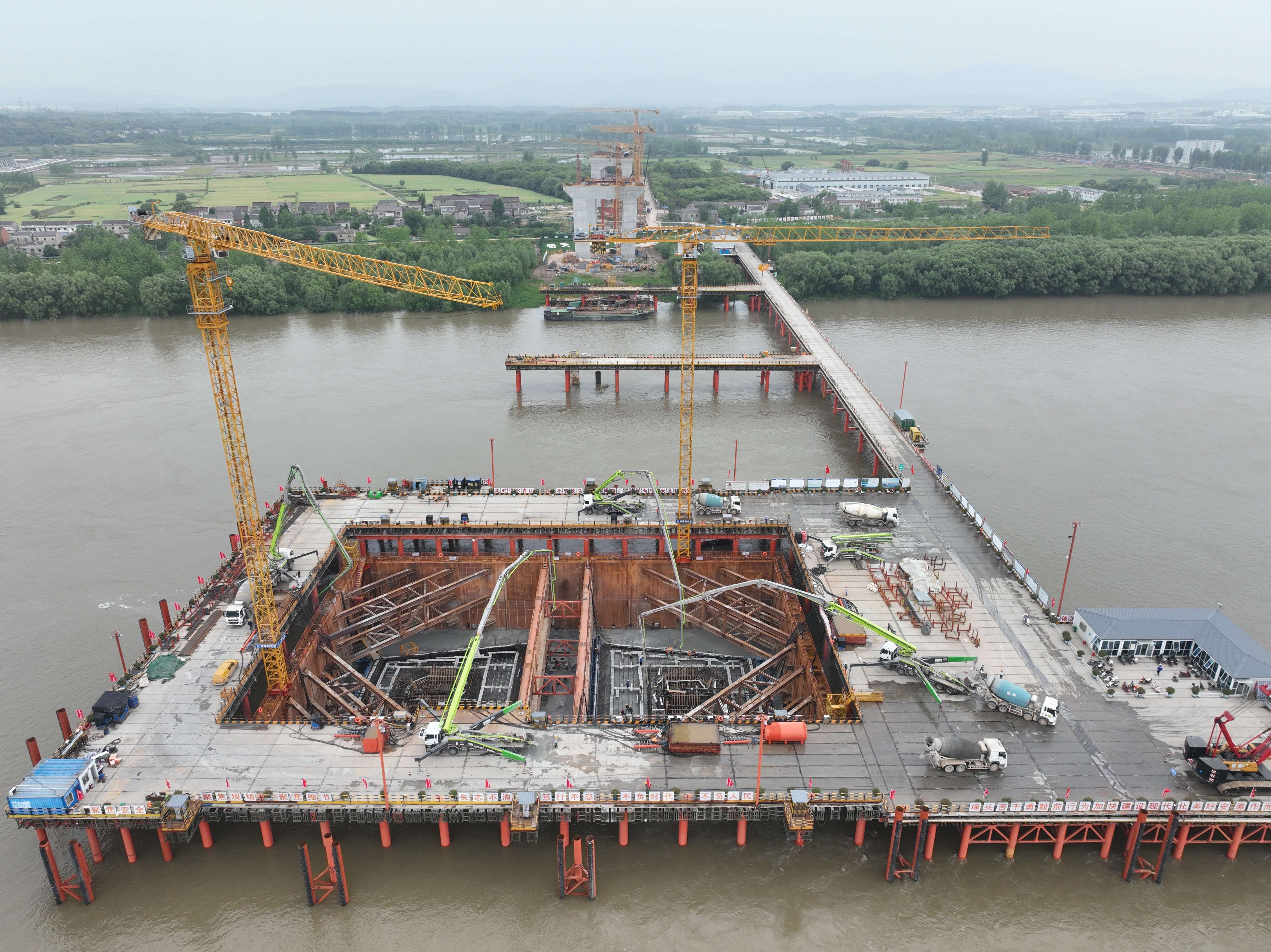 截至目前,池州長江公鐵大橋主橋4號墩承臺第一層施工完成,5號墩鐵路墩身已施工完成,6號墩目前在進行鐵路墩蓋梁施工。引橋完成10個承臺施工,S4號墩和S5號墩鐵路墩身已施工完成,8個鐵路墩身正在進行施工。